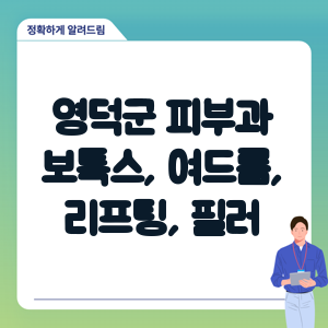 당신의 피부 고민을 해결해줄 영덕군 최고의 피부과 병원은 어디일까요? 보톡스, 여드름, 리프팅, 필러 등 다양한 피부 관리 서비스를 제공하는 병원을 찾고 계신가요?