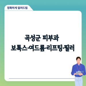 당신의 피부 고민을 해결할 수 있는 곡성군 내 최고의 피부과 병원은 어디일까요? 보톡스, 여드름, 리프팅, 필러 등 다양한 시술을 받고 싶지만 어디로 가야 할지 고민이신가요?