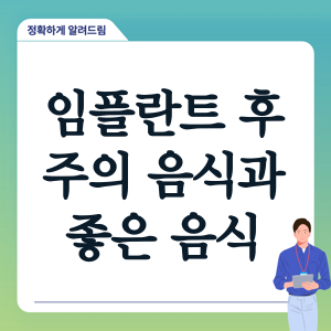 이번 글에서는 임플란트 수술 후 주의해야 할 음식과 좋은 음식들을 자세히 살펴보겠습니다. 수술 후 빠른 회복과 건강한 치아 관리를 위한 필수 정보를 제공하고자 합니다.