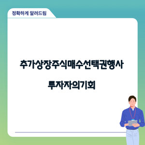 주식투자에 관심이 있으신가요? 그렇다면 '추가상장 주식매수선택권 행사'에 대해 주목해 보세요. 이 기회를 잘 활용한다면 투자 수익을 높일 수 있습니다.