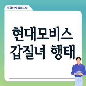 직장 내에서 상사의 부당한 대우를 받아본 적이 있나요? 그 경험이 당신의 삶에 어떤 영향을 미쳤나요? 이번에 현대모비스에서 발생한 갑질 사건은 단순한 개인 문제가 아닌, 기업 문화와 노동 환경의 문제를 드러낸 상징적인 사례입니다.